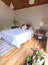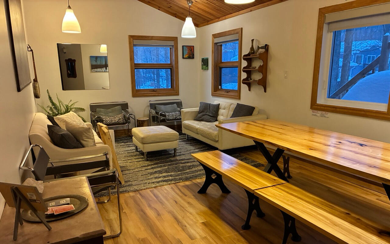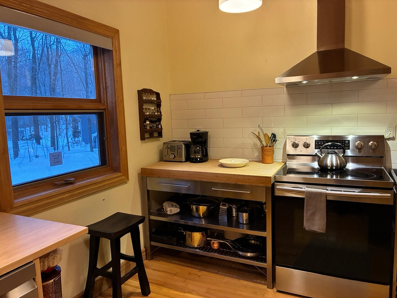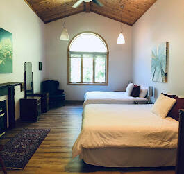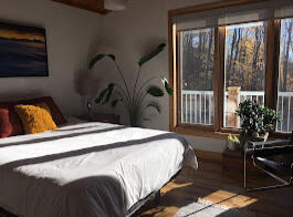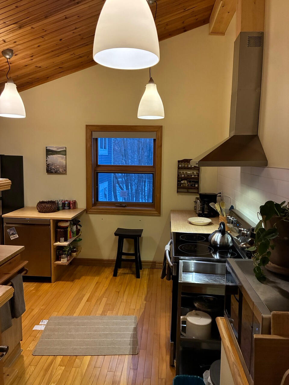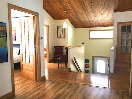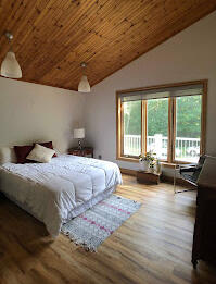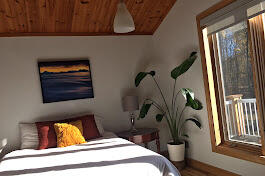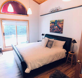 Your accommodations are spacious, sparkling clean, private, and peaceful. An artsy home away from home, tucked in the forest with lovely wood, vaulted ceilings, original art, fine art prints and photography.