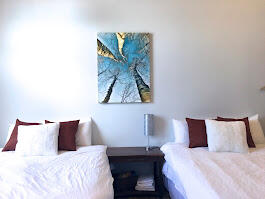 Your accommodations are spacious, sparkling clean, private, and peaceful. An artsy home away from home, tucked in the forest with lovely wood, vaulted ceilings, original art, fine art prints and photography.